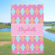Fun Pink orange preppy argyle custom name ladies Golf Towel