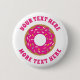 Fun pink sprinkles donut kid's Birthday party buttons. Cute vector design with custom text template. Add your own name or funny quote. Cool accessories for children and adults. Cheerful gift ideas for friends and family. Sweet food doughnut icon. Also nice for bakery, shop, store, business, company, wedding etc.