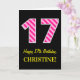 Fun Pink Striped "17"; Happy 17th Birthday; Name Card