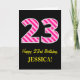 Fun Pink Striped "23"; Happy 23rd Birthday; Name Card