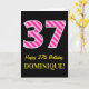 Fun Pink Striped "37"; Happy 37th Birthday; Name Card