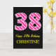 Fun Pink Striped "38"; Happy 38th Birthday; Name Card