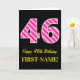 Fun Pink Striped "46"; Happy 46th Birthday; Name Card