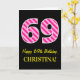 Fun Pink Striped "69"; Happy 69th Birthday; Name Card