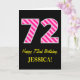 Fun Pink Striped "72"; Happy 72nd Birthday; Name Card