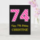 Fun Pink Striped "74"; Happy 74th Birthday; Name Card
