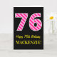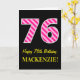 Fun Pink Striped "76"; Happy 76th Birthday; Name Card