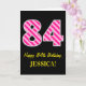 Fun Pink Striped "84"; Happy 84th Birthday; Name Card