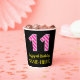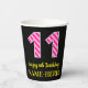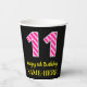 Fun Pink Stripes “11”: Happy 11th Birthday + Name Paper Cups
