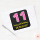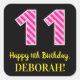 Fun Pink Stripes “11”: Happy 11th Birthday + Name Square Sticker