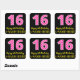 Fun Pink Stripes “16”: Happy 16th Birthday + Name Square Sticker