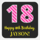 Fun Pink Stripes “18”: Happy 18th Birthday + Name Square Sticker