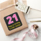 Fun Pink Stripes “21”: Happy 21st Birthday + Name Square Sticker