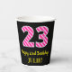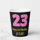 Fun Pink Stripes “23”: Happy 23rd Birthday + Name Paper Cups