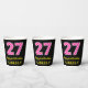 Fun Pink Stripes “27”: Happy 27th Birthday + Name Paper Cups
