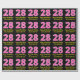 This fun birthday-themed wrapping paper design features a large number "28" with a dark pink and light pink stripes pattern, along with the message "Happy 28th Birthday,", and a custom name. The background is colored black. Wrapping paper like this might be a fun way of wrapping a birthday present or gift being given to somebody who is celebrating their twenty eighth birthday. [~Z0000376]