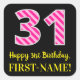 Fun Pink Stripes “31”: Happy 31st Birthday + Name Square Sticker