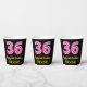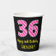 Fun Pink Stripes “36”: Happy 36th Birthday + Name Paper Cups