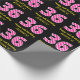 This fun birthday-themed wrapping paper design features a large number "36", with a dark pink and light pink stripes pattern. It also features the message "Happy 36th Birthday,", and a custom name. The background is colored black. Birthday themed wrapping paper like this might be used when giving a gift or present in celebration of somebody’s thirty sixth birthday. [~Z0000376]