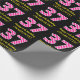 This fun birthday-themed wrapping paper design features a large number "37", with a light pink and dark pink stripes pattern. It also features the message "Happy 37th Birthday,", and a personalized name. The background is colored black. Wrapping paper like this might be used when wrapping gifts being given to somebody in celebration of their thirty seventh birthday. [~Z0000376]