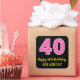 Fun Pink Stripes “40”: Happy 40th Birthday + Name Square Sticker