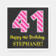 Fun Pink Stripes "41"; Happy 41st Birthday; Name Napkins