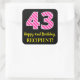 Fun Pink Stripes “43”: Happy 43rd Birthday + Name Square Sticker
