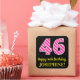 Fun Pink Stripes “46”: Happy 46th Birthday + Name Square Sticker