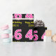 This fun birthday-themed wrapping paper design features a large number "46" with a light pink and dark pink stripes pattern, along with the message "Happy 46th Birthday,", and a custom name. The background is colored black. Birthday themed wrapping paper like this might be a fun way to wrap a gift or present being given to celebrate somebody’s 46th birthday. [~Z0000376]