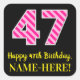 Fun Pink Stripes “47”: Happy 47th Birthday + Name Square Sticker