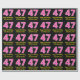 This fun birthday-themed wrapping paper design features a large number "47", with a dark pink and light pink stripes pattern. It also features the message "Happy 47th Birthday,", and a personalized name. The background is colored black. Birthday themed wrapping paper like this might be a fun way to wrap a gift or present being given to celebrate somebody’s forty seventh birthday. [~Z0000376]
