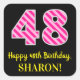 Fun Pink Stripes “48”: Happy 48th Birthday + Name Square Sticker