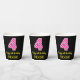 Fun Pink Stripes “4”: Happy 4th Birthday + Name Paper Cups