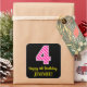 Fun Pink Stripes “4”: Happy 4th Birthday + Name Square Sticker