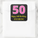 Fun Pink Stripes “50”: Happy 50th Birthday + Name Square Sticker