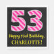 Fun Pink Stripes "53"; Happy 53rd Birthday; Name Napkins