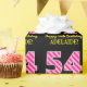 This fun birthday-themed wrapping paper design features a large number "54" with a light pink and dark pink stripes pattern, along with the message "Happy 54th Birthday,", and a customizable name. The background is colored black. Birthday themed wrapping paper like this might be a fun way to wrap a gift or present being given to celebrate somebody’s fifty fourth birthday. [~Z0000376]
