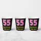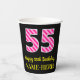 Fun Pink Stripes “55”: Happy 55th Birthday + Name Paper Cups