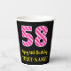 Fun Pink Stripes “58”: Happy 58th Birthday + Name Paper Cups