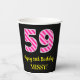 Fun Pink Stripes “59”: Happy 59th Birthday + Name Paper Cups
