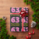 This fun birthday-themed wrapping paper design features a large number "63" with a light pink and dark pink stripes pattern, along with the message "Happy 63rd Birthday,", and a customizable name. The background is colored black. Birthday themed wrapping paper like this might be a fun way to wrap a gift or present being given to somebody who is celebrating their sixty third birthday. [~Z0000376]