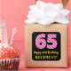Fun Pink Stripes “65”: Happy 65th Birthday + Name Square Sticker