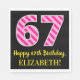 Fun Pink Stripes "67"; Happy 67th Birthday; Name Napkins