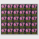 This fun birthday-themed wrapping paper design features a large number "67", with a dark pink and light pink stripes pattern. It also features the message "Happy 67th Birthday,", and a customizable name. The background is colored black. Birthday themed wrapping paper like this might be a fun way to wrap a gift or present being given to somebody who is celebrating their 67th birthday. [~Z0000376]