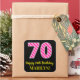 Fun Pink Stripes “70”: Happy 70th Birthday + Name Square Sticker