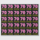 This fun birthday-themed wrapping paper design features a large number "70", with a dark pink and light pink stripes pattern. It also features the message "Happy 70th Birthday,", and a customizable name. The background is colored black. Wrapping paper like this might be used when giving a gift or present in honor of somebody’s seventieth birthday. [~Z0000376]