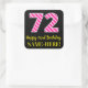Fun Pink Stripes “72”: Happy 72nd Birthday + Name Square Sticker