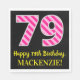 Fun Pink Stripes "79"; Happy 79th Birthday; Name Napkins
