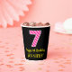 Fun Pink Stripes “7”: Happy 7th Birthday + Name Paper Cups
