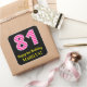 Fun Pink Stripes “81”: Happy 81st Birthday + Name Square Sticker